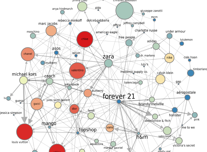 Fashion knockoff network. Nodes are brands and there is a