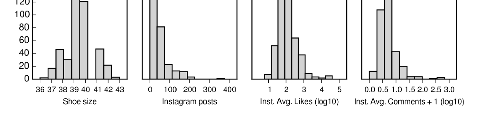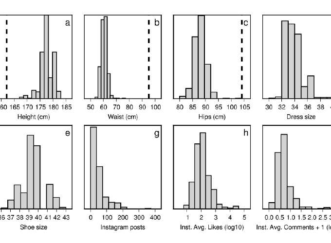 Distribution of body size measures and Instagram activity of