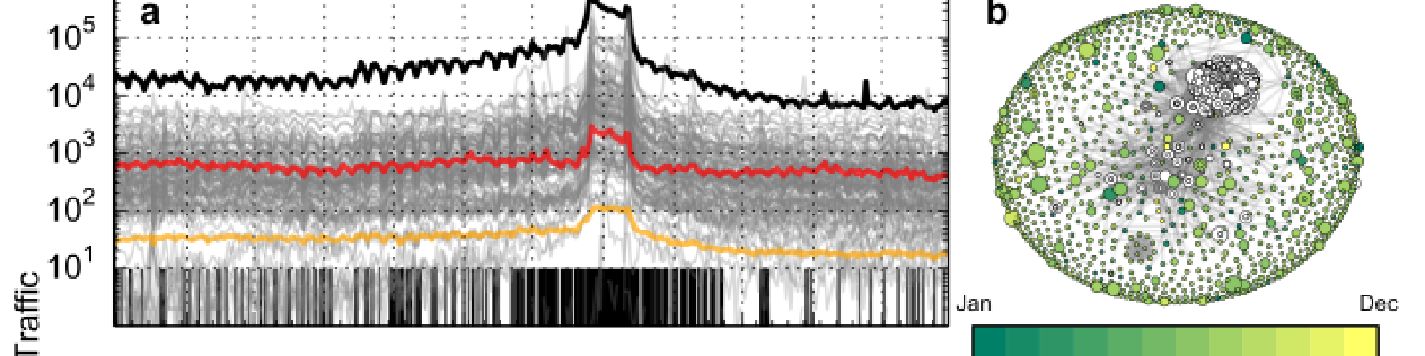 (a), Time series of traffic. The grey lines represent the daily